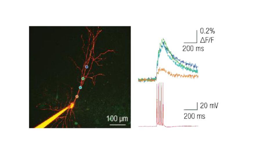 L’elettrofisiologia è la disciplina che studia le proprietà elettriche delle cellule, in particolare le variazioni del potenziale di membrana nei neuroni. Tuttavia, studiare i potenziali d’azione presenta una sfida importante: la loro velocità. Gli impulsi neuronali durano pochi millisecondi e le tecniche di imaging spesso non raggiungono una risoluzione temporale sufficiente per registrarli. Ad esempio, la microscopia a due fotoni offre un’eccellente risoluzione spaziale, ma una risoluzione temporale limitata: può visualizzare le variazioni di Ca²⁺ nei compartimenti dendritici, ma non rilevare i rapidissimi cambiamenti elettrici che caratterizzano i potenziali d’azione.